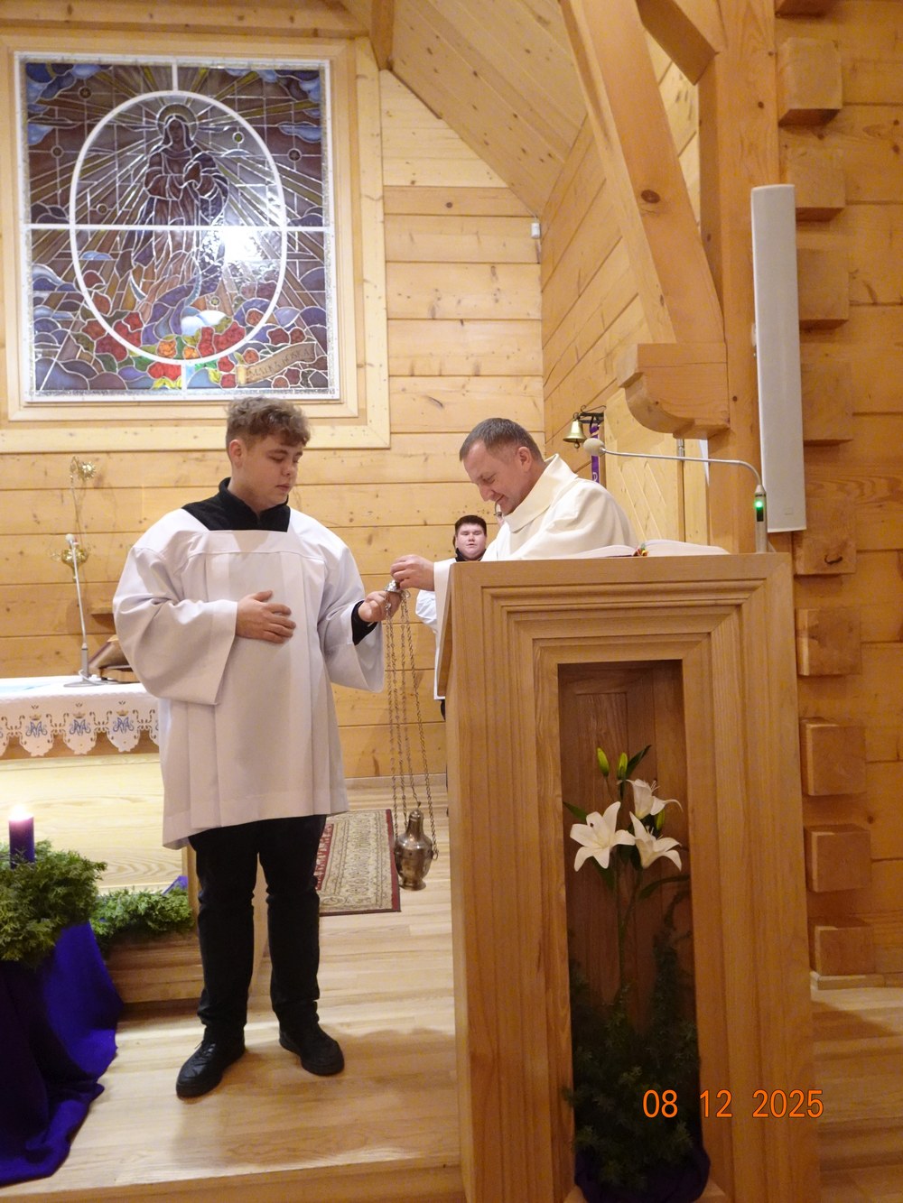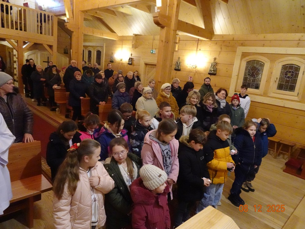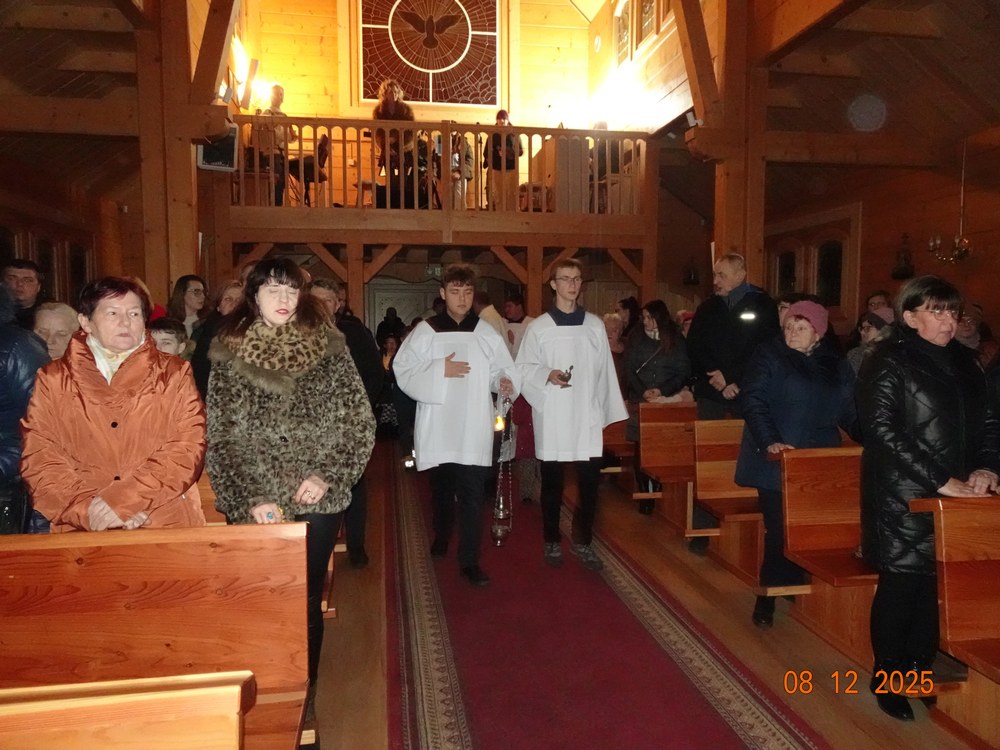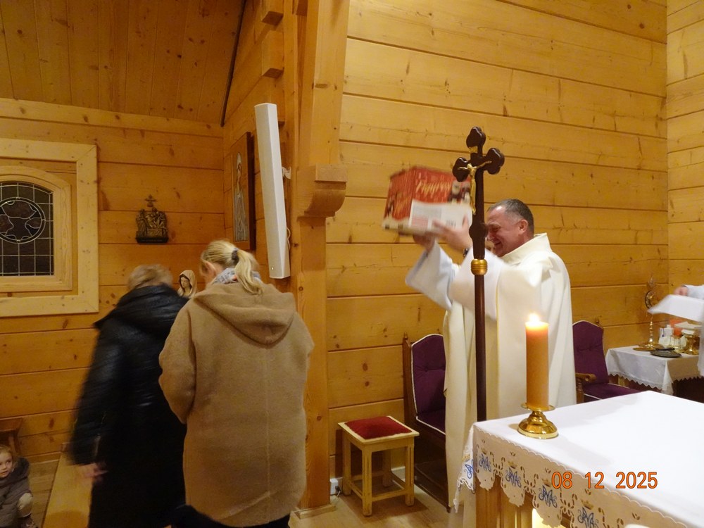 Co roku 8 grudnia obchodzimy uroczystość Niepokalanego Poczęcia Najświętszej Maryi Panny. Choć od niedawna nie jest to już w Kościele w Polsce święto nakazane to jednak nadal licznie gromadzimy się w tym dniu w naszych świątyniach i kaplicach, by oddać cześć Maryi. To był nasz trzeci dzień rekolekcji adwentowych. Przedstawiciele wspólnoty parafii Mszano podziękowali ks. rekolekcjoniście za wygłoszone Słowo Boże. Rekolekcje adwentowe prowadzone były przez ks. Przemysława Tyblewskiego, kapłana diecezji poznańskiej, wychowawcy seminaryjnego, który przyjechał do nas z klerykami roku propedeutycznego.