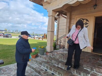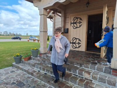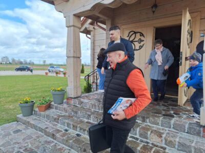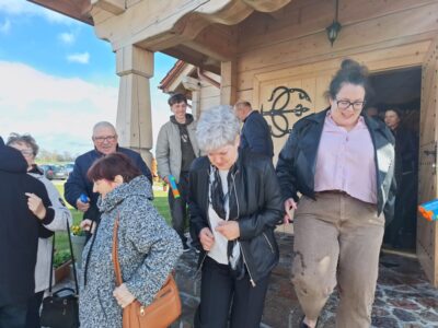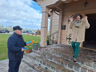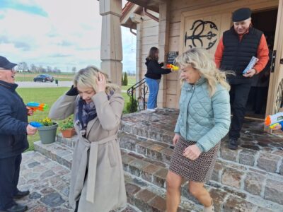 Tradycyjnie po Mszy Św. w kaplicy nasi parafianie młodsi i starsi na czele z p. Januszem Klonowskim oblewali wodą wychodzących wiernych ze świątyni. Śmiechu było przy tym bardzo dużo i również wszyscy byli zadowoleni, że mężczyźni pamiętają o kobietach i tradycja w naszej parafii nie upadła. W tym dniu nawet dla ks. proboszcza Sławomira Witkowskiego nie było taryfy ulgowej. Został on również oblany wodą.