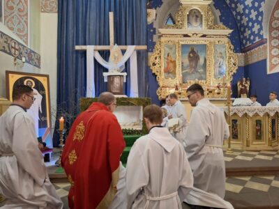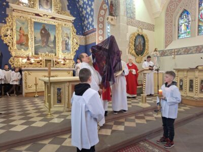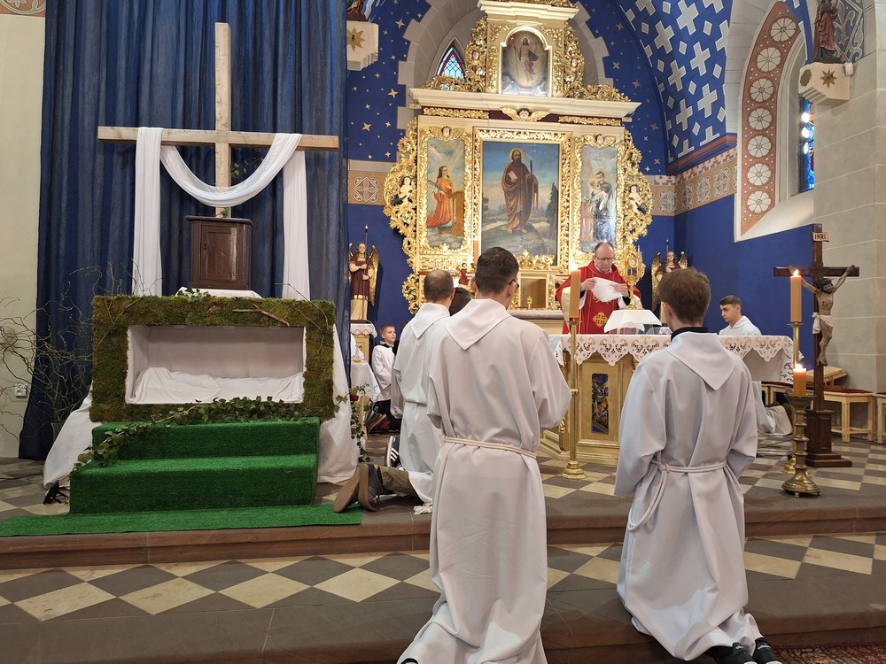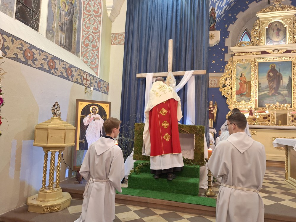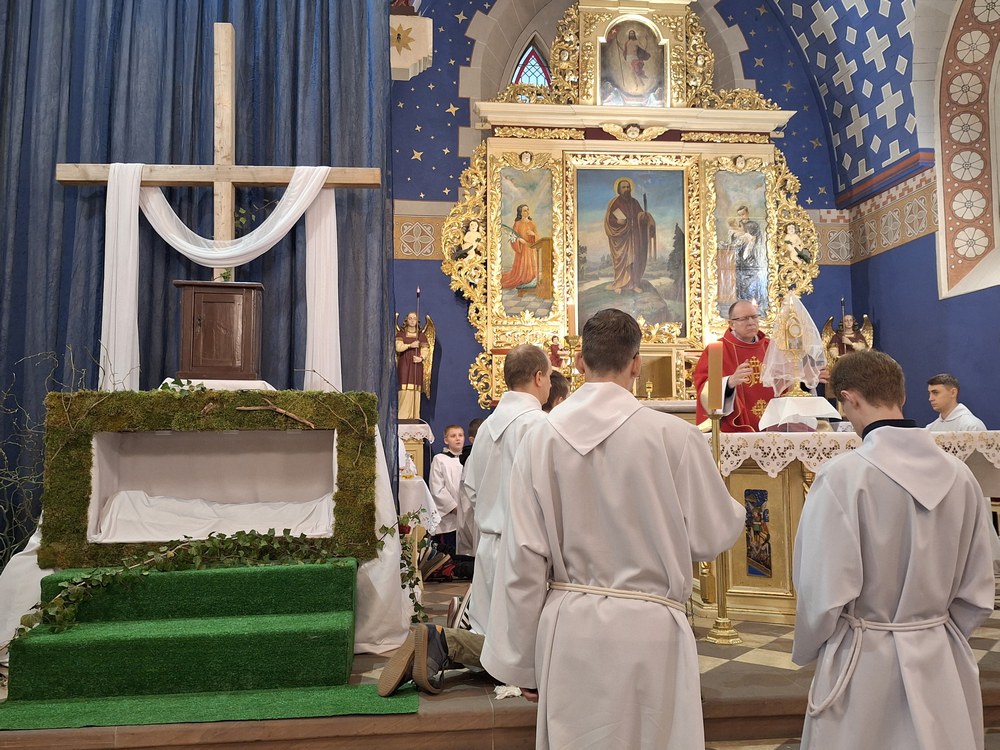 W Wielki Piątek ks. Sławomir Witkowski wraz z ks. Janem Żymantem sprawowali Liturgię Męki Pańskiej w kościele w Mszanie. W Wielki Piątek nie sprawuje się Eucharystii, choć wierni mogą przyjąć Komunię świętą.