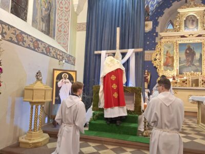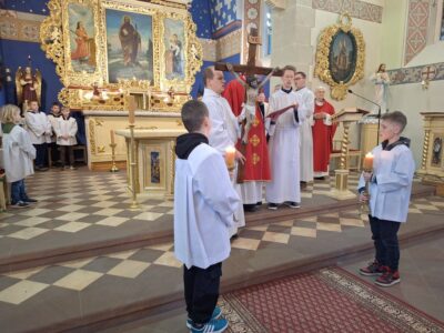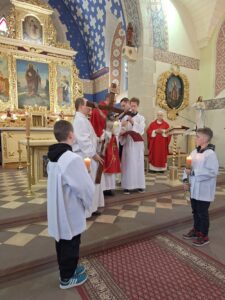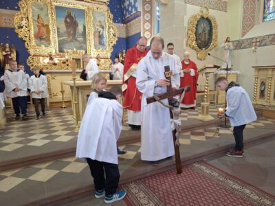 Obrzędowi towarzyszył śpiew: „Oto drzewo krzyża, na którym zawisło Zbawienie świata – Pójdźmy z pokłonem”.