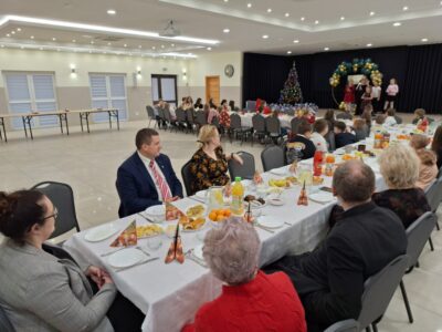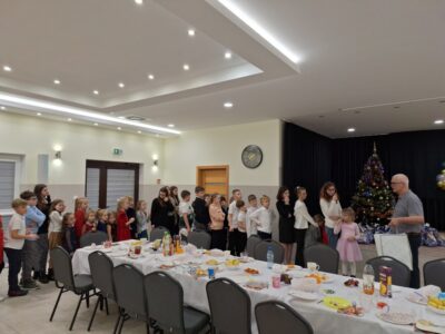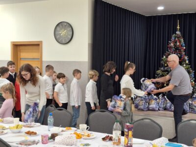 W dniu 11 grudnia 2025 r. w świetlicy wiejskiej w Małkach zorganizowano Wigilię dla uczniów uczęszczających na zajęcia świetlicy środowiskowej. Uroczyste spotkanie opłatkowe rozpoczął Marek Piotrowski – opiekun świetlicy. Złożył życzenia z okazji zbliżających się świąt Bożego Narodzenia i przedstawił gości w osobach: ks. Sławomir Witkowski – proboszcz parafii Mszano, Wójt Gminy Bobrowo- p. Paweł Klonowski wraz z małżonką Beatą, Radni Gminy Bobrowo: panie: Kamila Zonakowska, Alina Prokopowicz, p. Mirosława Załęska – sołtys wsi Małki, p. Katarzyna Malinowska – Wituła – dyrektorka Szkoły Podstawowej im. Dywizjonu 303 w Małkach. Do życzeń przyłączył się również Wójt Gminy Bobrowo i poprosił, żeby w jego imieniu przekazać je rodzinom. Na ręce opiekuna świetlicy przekazał paczki dla dzieci oraz prezenty dla uczniów Życzenia dzieciom złożyli też Radni, p. Dyrektor i na ręce opiekuna przekazali słodkie upominki. Z kolei ksiądz Sławomir Witkowski również przekazał torbę słodyczy, złożył życzenia i pobłogosławił opłatek.