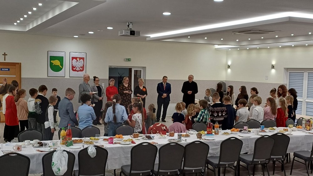 W dniu 11 grudnia 2025 r. w świetlicy wiejskiej w Małkach zorganizowano Wigilię dla uczniów uczęszczających na zajęcia świetlicy środowiskowej. Uroczyste spotkanie opłatkowe rozpoczął Marek Piotrowski – opiekun świetlicy. Złożył życzenia z okazji zbliżających się świąt Bożego Narodzenia i przedstawił gości w osobach: ks. Sławomir Witkowski – proboszcz parafii Mszano, Wójt Gminy Bobrowo- p. Paweł Klonowski wraz z małżonką Beatą, Radni Gminy Bobrowo: panie: Kamila Zonakowska, Alina Prokopowicz, p. Mirosława Załęska – sołtys wsi Małki, p. Katarzyna Malinowska – Wituła – dyrektorka Szkoły Podstawowej im. Dywizjonu 303 w Małkach. Do życzeń przyłączył się również Wójt Gminy Bobrowo i poprosił, żeby w jego imieniu przekazać je rodzinom. Na ręce opiekuna świetlicy przekazał paczki dla dzieci oraz prezenty dla uczniów Życzenia dzieciom złożyli też Radni, p. Dyrektor i na ręce opiekuna przekazali słodkie upominki. Z kolei ksiądz Sławomir Witkowski również przekazał torbę słodyczy, złożył życzenia i pobłogosławił opłatek.